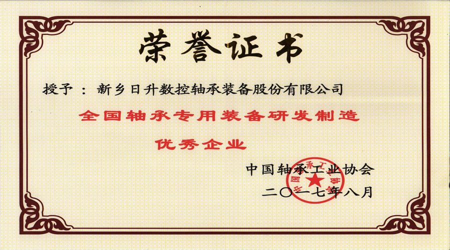 新鄉(xiāng)日升獲評(píng)“全國軸承專用裝備研發(fā)制造優(yōu)秀企業(yè)”