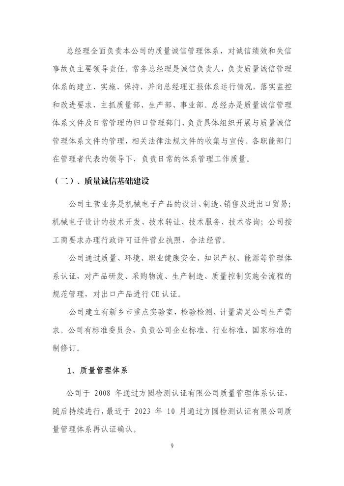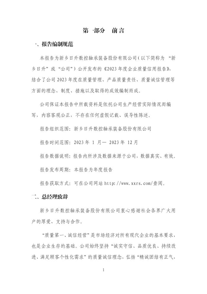 新鄉(xiāng)日升2023年度企業(yè)質(zhì)量信用報告