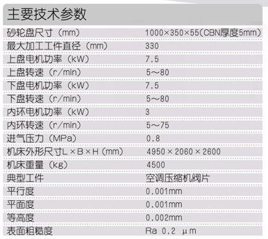 本機(jī)床采用立式布局,主機(jī)床身采用鑄鐵構(gòu)件,減少加工時振動,確保加工精度。上、下研磨盤及內(nèi)環(huán)均采用交流變頻無級調(diào)速,保證了研磨各種材料和各種形狀工件的工藝轉(zhuǎn)速。氣動控制實現(xiàn)上研磨盤擺入、擺出和上升、下降動作,便于操作。采用預(yù)壓、主壓、后壓三階段壓力控制,壓力值可任意調(diào)整并可自動轉(zhuǎn)換。